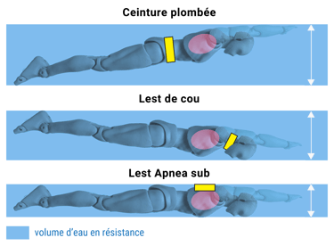 Si vous n'êtes pas lesté au plus proche des poumons, cela va déséquilibrer votre assiette et donc avoir une répercussion sur votre progression. Plus vous êtes à plat dans l'eau, moins vous offrez de résistance à l'eau.